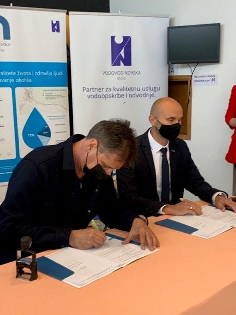 Ugovor o projektiranju i izgradnji uređaja za pročišćavanje otpadnih voda potpisali su direktor Vodovoda Novska Mario Filipović i Dražen Miličić u ime Zajednice ponuditelja: GIS Aqua Austria GmbH i Palir d.o.o. Zagreb. Potpisivanju ugovora nazočili su ministar gospodarstva i održivog razvoja Tomislav Ćorić i generalni direktor Hrvatskih voda Zoran Đuroković.
